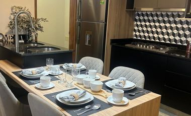 Al ingresar al departamento encontraras la barra de la cocina a un costado, así como su cocina integral equipada con parrilla campana y horno, espacio para refrigerador y a un costado cuarto de lavado con lavadero e instalaciones para centro de lavado, el departamento cuenta con un ventanal de piso a techo que permite gran claridad he iluminación natural a todo el departamento con una excelente vista a la avenida en este espacio podrás instalar tu sala comedor. Cuenta con 2 baños completos uno en habitación principal y otro para dar servicio a habitación secundaria y área común